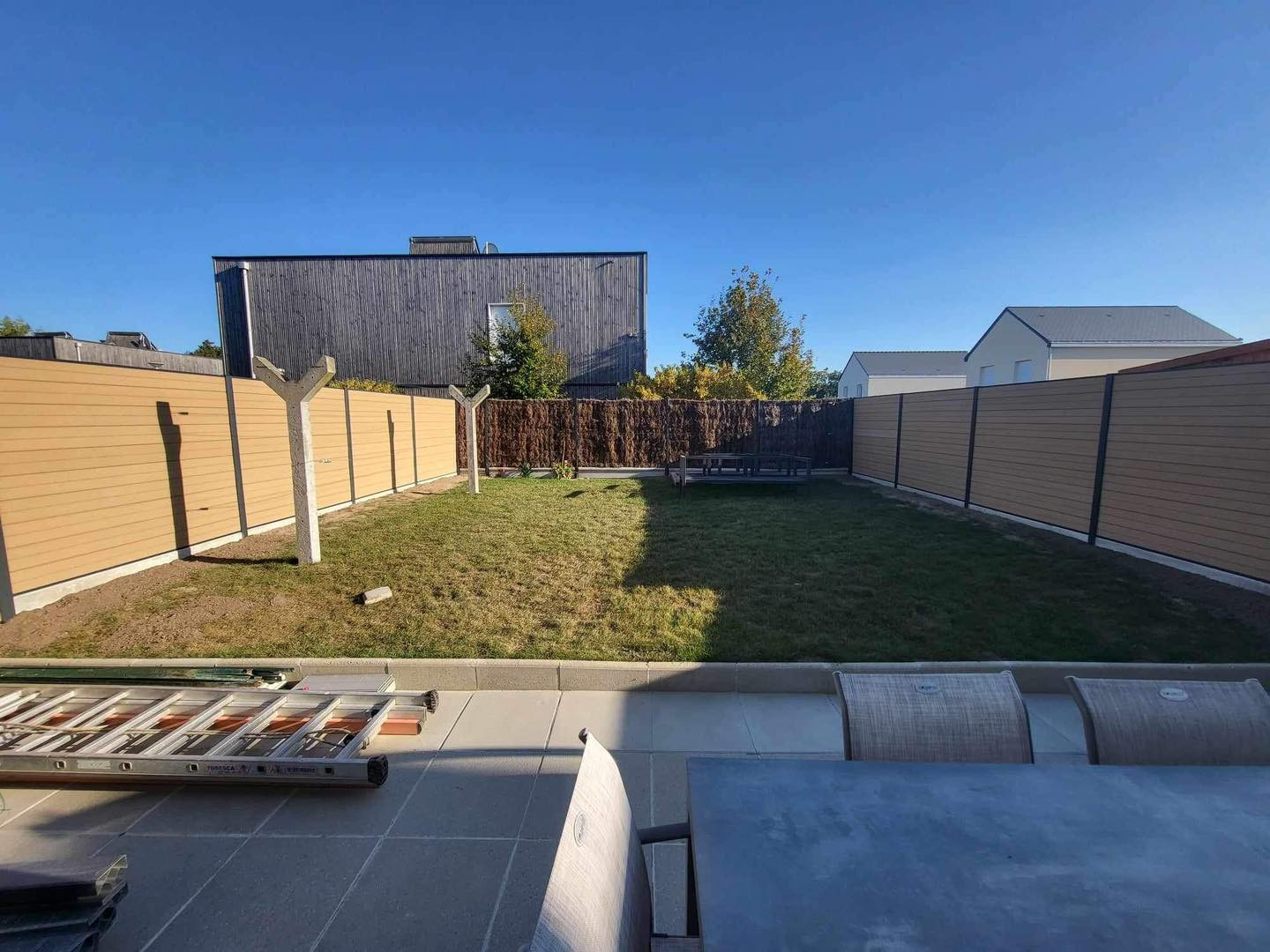 Réalisation d'une clôture en lame composite avec poteaux alu gris anthracite à Herbignac (44) | © BELLIOT TP
